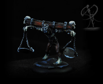 I felt like taking a darker look to this crew than the last time I'd painted them (yep, this is another in a long line of "I used to like this but then got better at painting" projects). this was in large part because of the Death Marshals I'd painted for my Tara crew:
